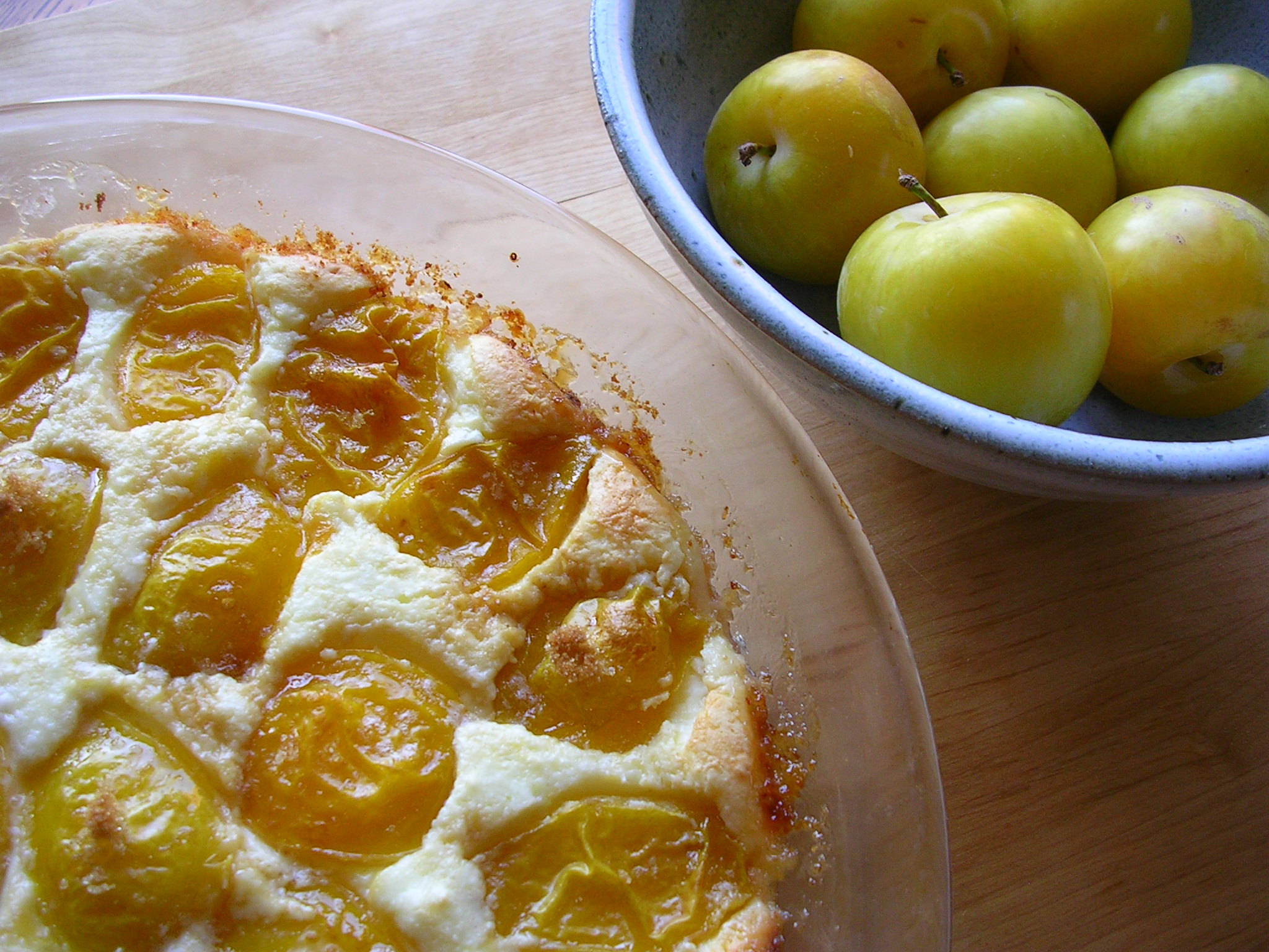Crustless Ricotta Pie with Yellow Plums