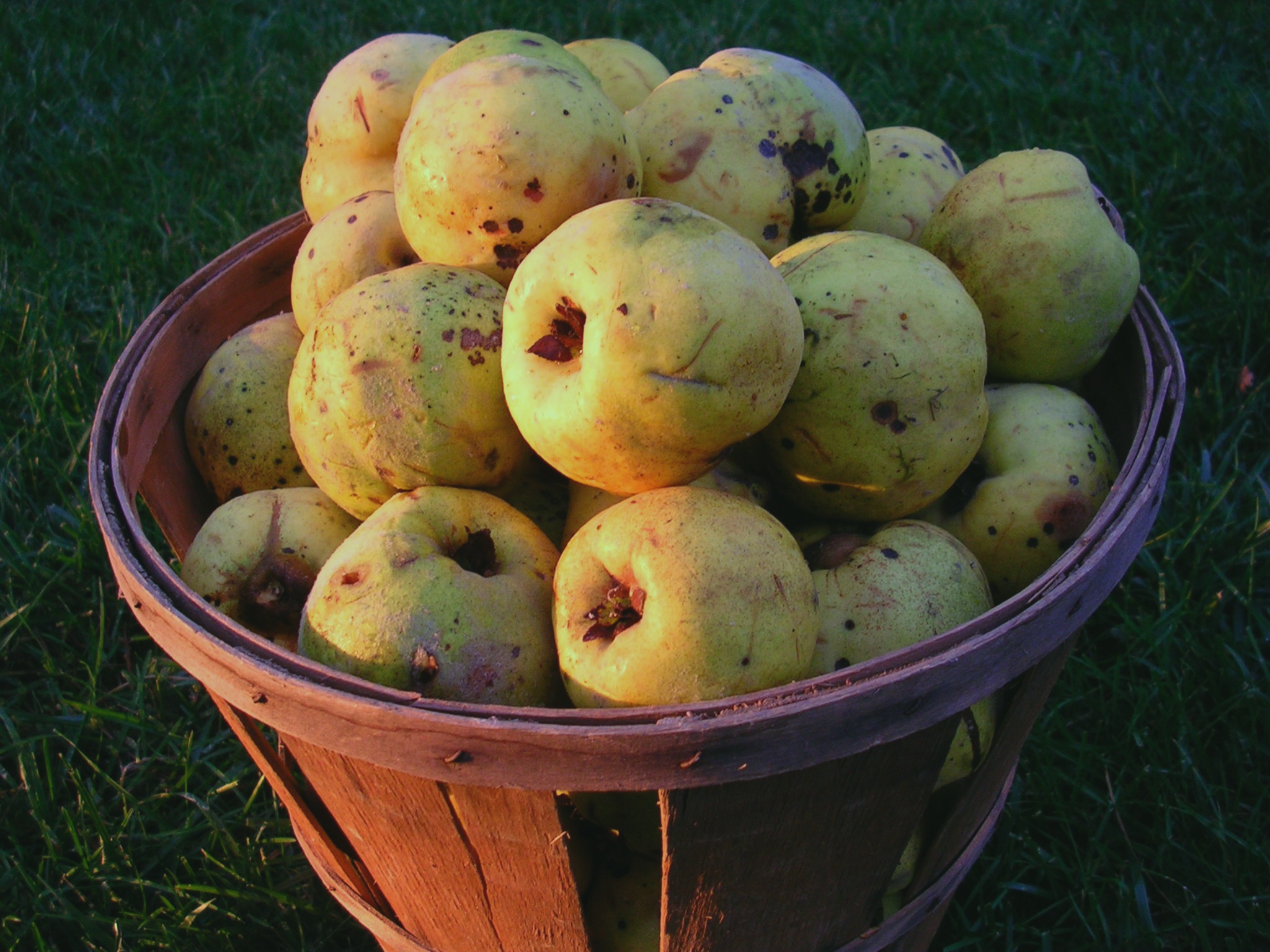 Other than eating them, I don’t want to have anything to do with quinces for a very long time. Last week I spent three long evenings, and a good part of Saturday, peeling, coring, and chopping quinces, making quince jelly, quince sauce, quince compote, quince chutney, and poached quinces. In the process, I ran out of sugar, apple cider vinegar, jars, and lids. I dulled two paring knives (quinces are very acidic!), got a blister on my hand, and had to run over to a friend’s house because I don’t have a pressure cooker and I thought the quince sauce needed special processing (now I know better). Also, two filled canning jars cracked during sealing, spilling their precious content into the boiling water.