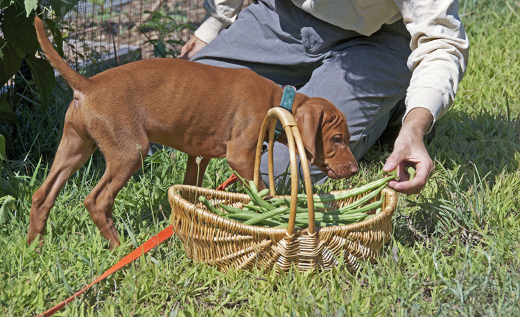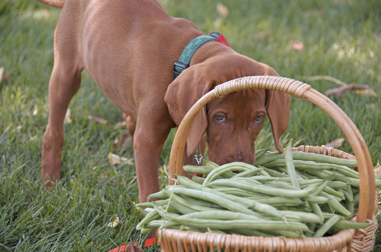 Recently I have been stalked in the kitchen by a little guy. His name is Laszlo, our new Vizsla puppy. Frankly, I have never tolerated well having others around when I cook. My kitchen is my castle! And now, in busy August of all months, when a constant flow of produce from my garden lands in my kitchen waiting to be processed, I have a puppy bouncing around, nibbling on my feet, exploring every inch of the kitchen, trying to open the refrigerator with his tiny paws and mouth.