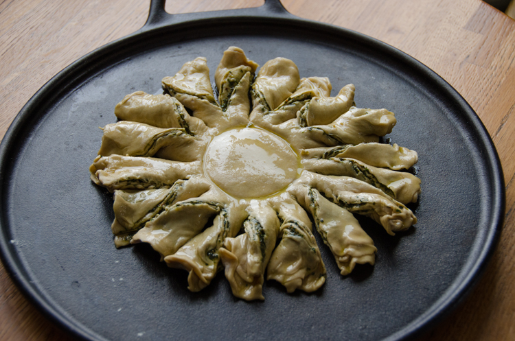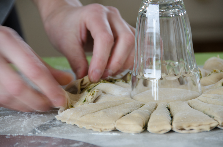 Shaping the flower needs practice. Mine looked a bit wilted but that was OK. I am sure I will get better at it next time, just as I am confident I will find more ways to cut down on sugar without giving up the sweet life.Pesto Flower ready to bakePesto Flower