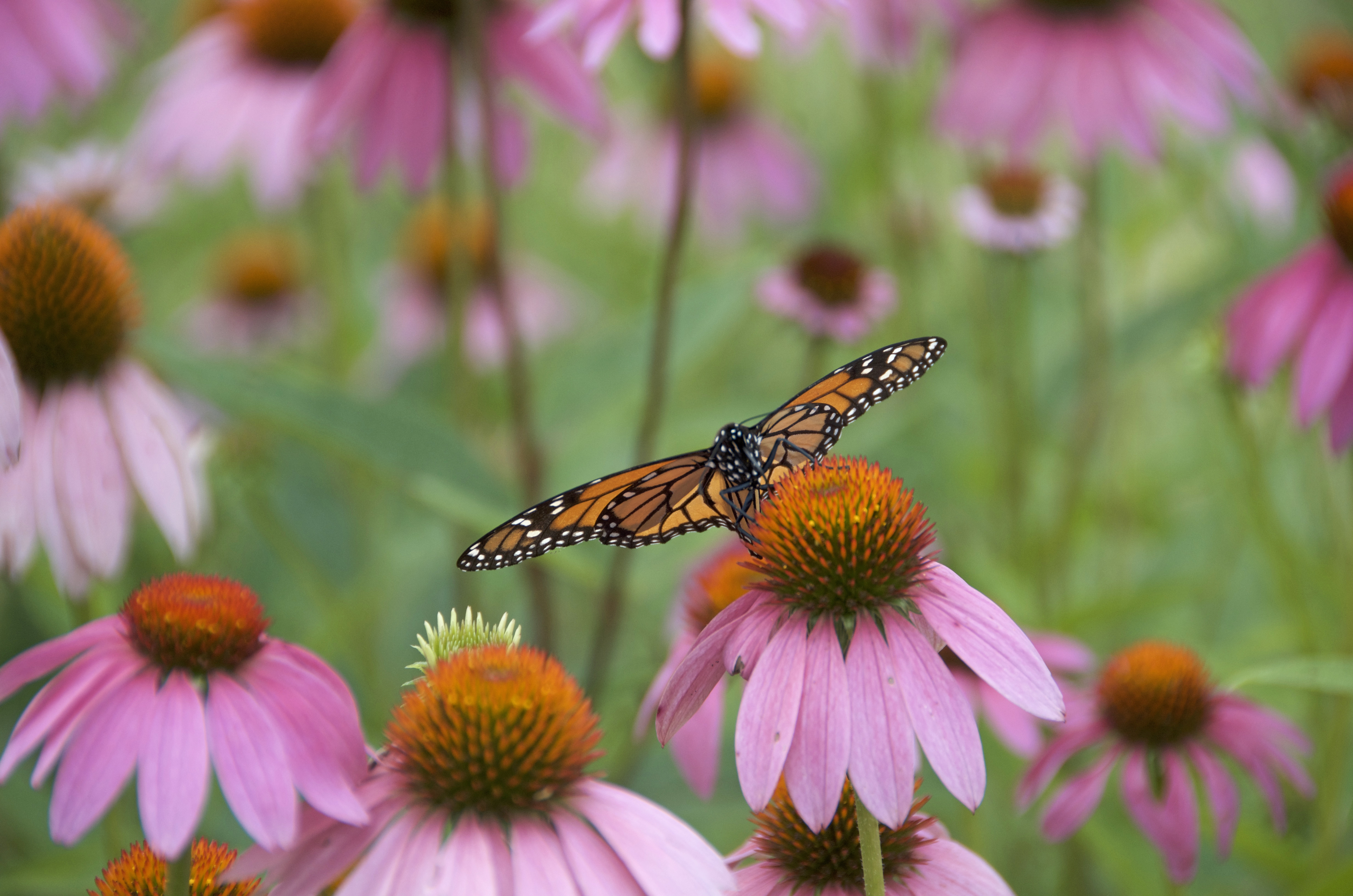 Yesterday, my Eustachian tube was giving me trouble while I was out in the yard. I immediately moved into my ostrich mode and stood with my head upside down. This time while I sought relief, I got a surprise gift as I peeked at the world upside down. I saw a monarch butterfly that was making the rounds of the gorgeous New England asters I planted last year. The monarch and the asters are sights that make me happy no matter from what angle I look at them. This is the power of gardening.