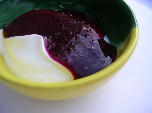 I have never made anything else than elderberry soup or jelly from elderberries. There were not enough storm berries for any of those but I know from Elderberry Soup that elderberries and apples are a good combination. So I made this easy after-the-storm elderberry sauce with apples. I had it with Greek yogurt but I can imagine it also delicious on cottage cheese, rice pudding, with waffles or pancakes.