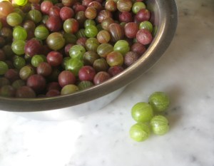 I have barely started to harvest from the third gooseberry bush. Soon I will be out there again picking, wincing each time I hit a thorn. But the fact that I can just walk into the garden, while other people hungry for gooseberries hunt them down at farmers’ markets, makes me appreciate more what I have. Also, with the taste of that delicious gooseberry relish and chutney still lingering on my tongue, I know again what I’m doing this for.