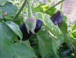 I picked my six plants clean and used the larger ones for a dip adapted from Deborah Madison’s excellent Roasted Eggplant Dip with Dill, Yogurt, and Walnuts, which I like better than traditional Baba Ghannoush with tahini. As eggplants and eggplant skins are a good addition to vegetable broth (here is my recipe), that’s where all the other tiny eggplants are going.
