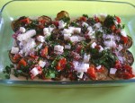 There is more waste from all the skins of the small Fairytale eggplants, therefore I started with a full 2 pounds of eggplant instead of the 1 1/4 pounds in the original recipe. Also, I always throw in a handful of dill fronds (all tough thick sprigs removed) instead of chopping the dill, as everything gets finely pureed in the food processor anyway.
