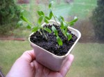 So this morning I decided to start all over again, emptying out all the pots and sifting through the soil. I found several melon seeds that had not germinated, I suspect due to lack of heat. But I could not believe my eyes when the rest of the pots contained no seeds whatsoever! Then it dawned on me – one sunny day last week, I had put the tray outside on the patio table, and the birds must have eaten them.