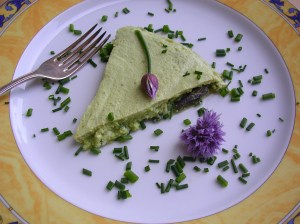 11. Place the sponge cake back into the springform pan and grease the sides. If the sponge has shrunk during baking, push it down gently so it completely fills the pan. Pour the filling into the pan and even it out with a knife or a spatula. Cover with a cake dome (no plastic wrap, it will cling and mess up the surface) and refrigerate until set, at least 4 yours. Run a large knife dipped in cold water all around the filling to loosen, then carefully remove the rim. Decorate with edible flowers or fresh fruit.